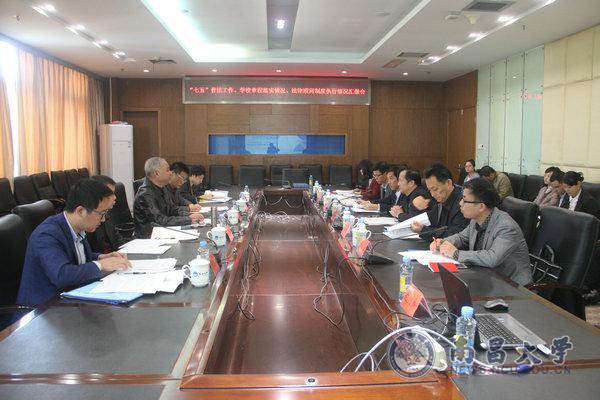 會上,我校與江西財經大學、江西農業大學分別圍繞“七五”普法工作、學校章程落實情況、法律顧問制度執行情況等方面進行了匯報。