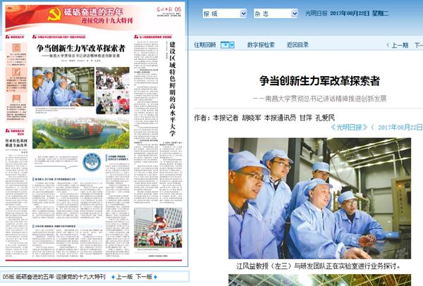 編者按:8月22日,《光明日?qǐng)?bào)》在《砥礪奮進(jìn)的五年·迎接黨的十九大特刊》中,以整版的篇幅專版報(bào)道了我校在推進(jìn)創(chuàng)新發(fā)展中取得的成果。