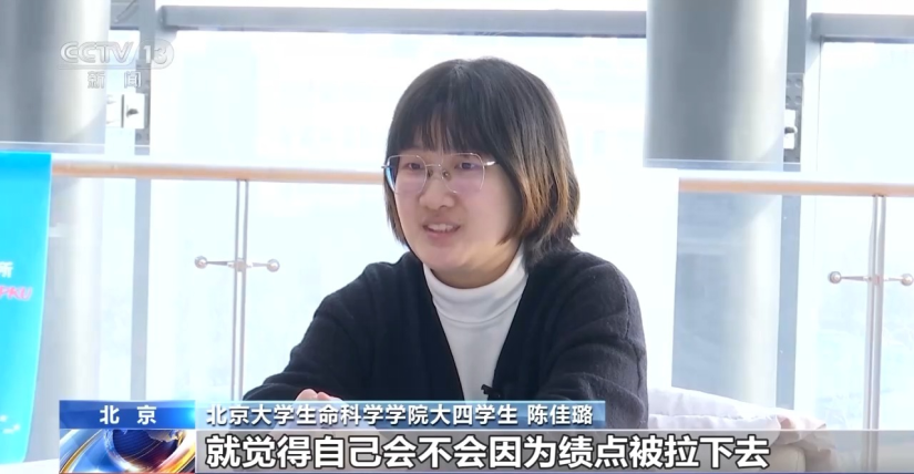 北京大學(xué)生命科學(xué)學(xué)院大四學(xué)生蔡尚璇:明確知道了未來的考核標(biāo)準(zhǔn)并不是以成績(jī)?yōu)槲ㄒ粚?dǎo)向的話,這個(gè)時(shí)候就沒有卷績(jī)點(diǎn)的情況了,可能成績(jī)是一方面,但比較重要的一方面還是在科研的素養(yǎng),因?yàn)樯茖W(xué)是一個(gè)實(shí)驗(yàn)科學(xué),我覺得我投入到實(shí)驗(yàn)室的時(shí)間更長(zhǎng)了。