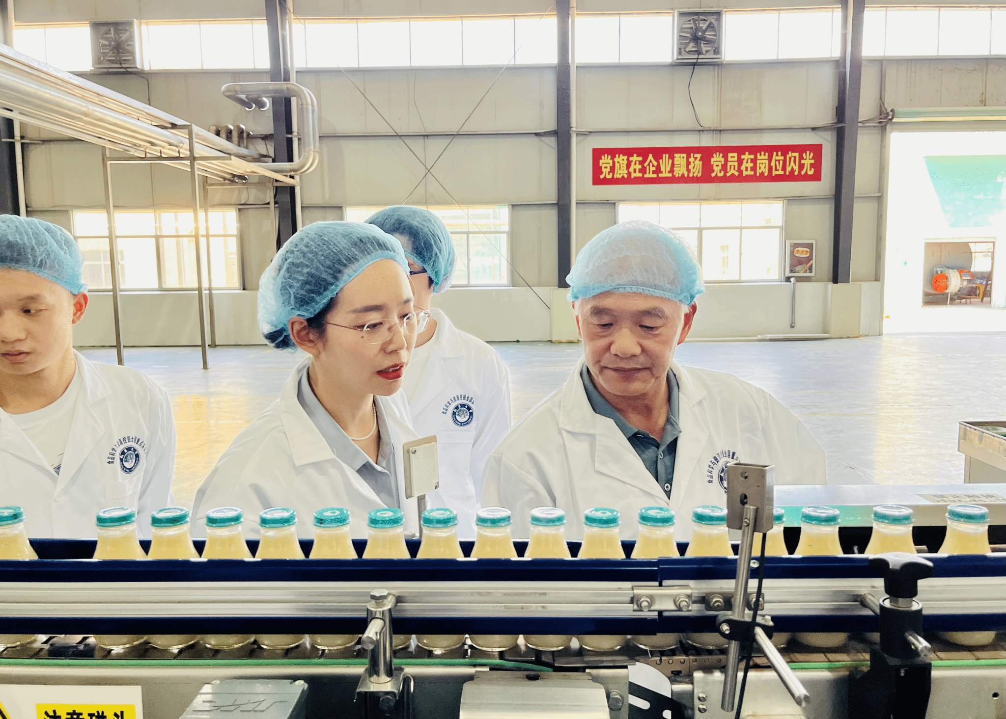 妥善存放酸奶后,一行人走進了蓮子加工車間,生產車間內一臺臺先進食品生產設備正高速運轉,蓮子清香撲鼻而來。鄧澤元等輕車熟路,看完生產線情況后,立馬轉向查看并指導了該公司新解鎖的低溫急凍嫩鮮蓮子的生產技術。
