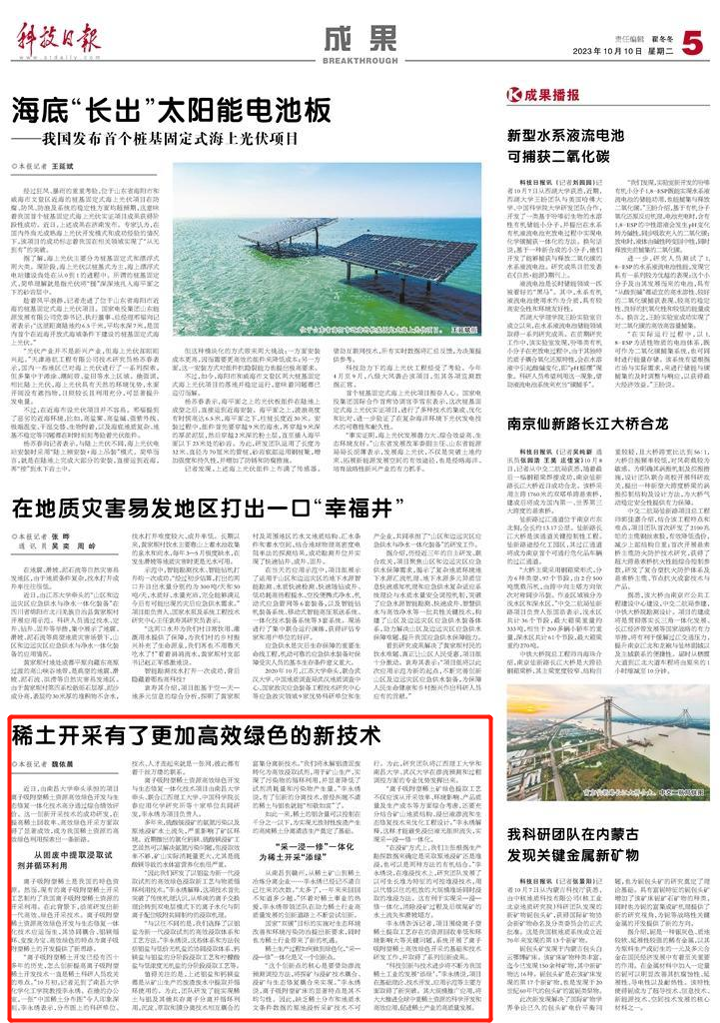 編者按:10月10日,《科技日報》以《稀土開采有了更加高效綠色的新技術(shù)》為題刊發(fā)由南昌大學(xué)牽頭承擔(dān)的項目離子吸附型稀土資源高效綠色開發(fā)與生態(tài)修復(fù)一體化技術(shù)取得了顯著成效。具體內(nèi)容如下: