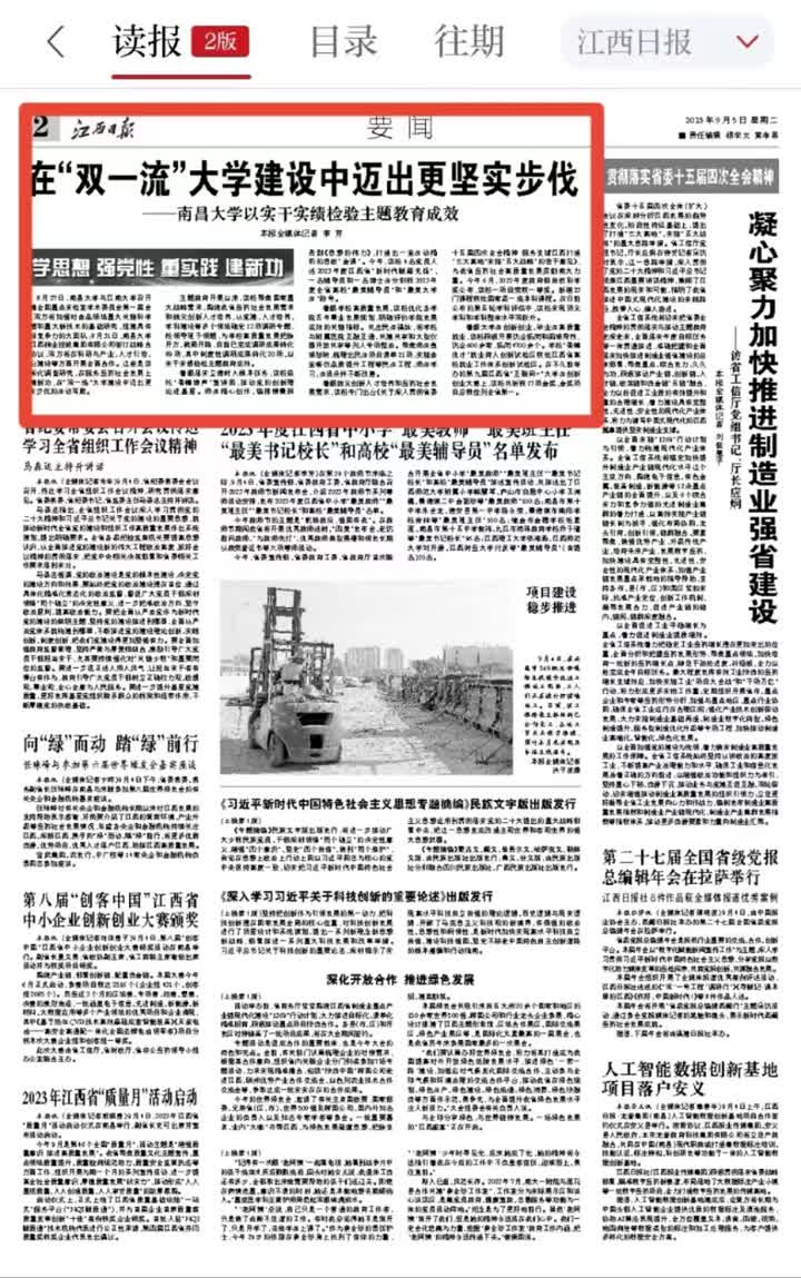 著眼拔尖創(chuàng)新人才培養(yǎng)和經(jīng)濟(jì)社會(huì)發(fā)展需求,該校專門出臺(tái)《關(guān)于深入貫徹省委十五屆四次全會(huì)精神 服務(wù)支撐江西打造“三大高地”實(shí)施“五大戰(zhàn)略”的若干意見》,為我省經(jīng)濟(jì)社會(huì)高質(zhì)量發(fā)展貢獻(xiàn)南大力量。今年6月,2022年度教育部自然科學(xué)獎(jiǎng)公布,該校一項(xiàng)目榮獲一等獎(jiǎng)。新增23門課程獲批國家級(jí)一流本科課程。在日前公布的第五輪學(xué)科評(píng)估中,該校實(shí)現(xiàn)頂尖學(xué)科和學(xué)科整體水平雙躍升。