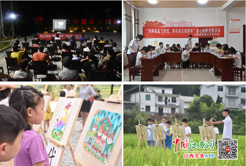 南昌大學“文化扶貧”暑期社會實踐隊來到學校定點幫扶村——上饒市玉山縣程村村,開展紅色電影周、童心畫展、微電影拍攝等活動,用實際行動參與打贏脫貧攻堅戰,助力程村村同步小康,得到地村民歡迎和稱贊。