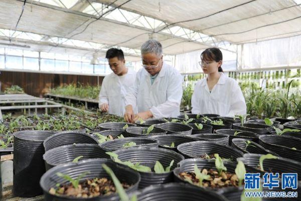 研究表明,大黃花蝦脊蘭瀕危的主要原因是其賴以生存的生態環境遭到破壞、人類過度采挖、種子有胚率極低、自然界為其有效傳粉的昆蟲缺失,導致適生區縮小且破碎化加劇。在找到了原因之后,楊柏云教授團隊建立了無菌培養和真菌共生培養的繁殖體系,在實驗室成功進行了規模化育苗。(新華網 吳亞芬 攝)