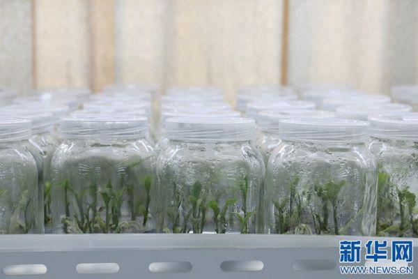圖為在實驗室培育出的大黃花蝦脊蘭小苗。(新華網 吳亞芬 攝)