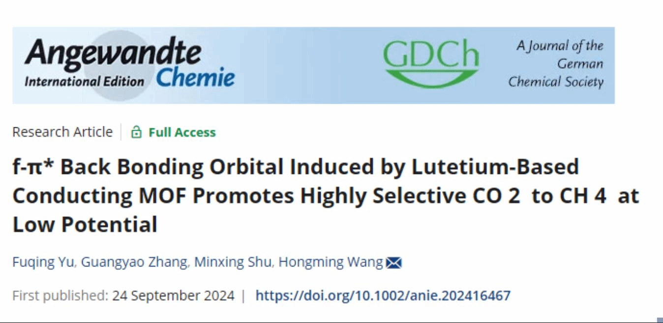 本網訊(化學化工學院)近日,我校化學化工學院王紅明教授課題組在稀土催化和二氧化碳資源化利用領域再次取得重要進展。研究成果以“ f-π* Back Bonding Orbital Induced by Lutetium-Based Conducting MOF Promotes Highly Selective CO2 to CH4 at Low Potential ”為題發表于化學領域頂級TOP期刊Angewandte Chemie International Edition (IF: 16.6)。南昌大學為唯一署名單位,第一作者是我校余福清博士、張光耀,博士研究生舒敏興為共同作者,王紅明教授為通訊作者。該成果是我校化學學科近年來在二氧化碳資源化利用與稀土催化領域取得的又一創新性成果。