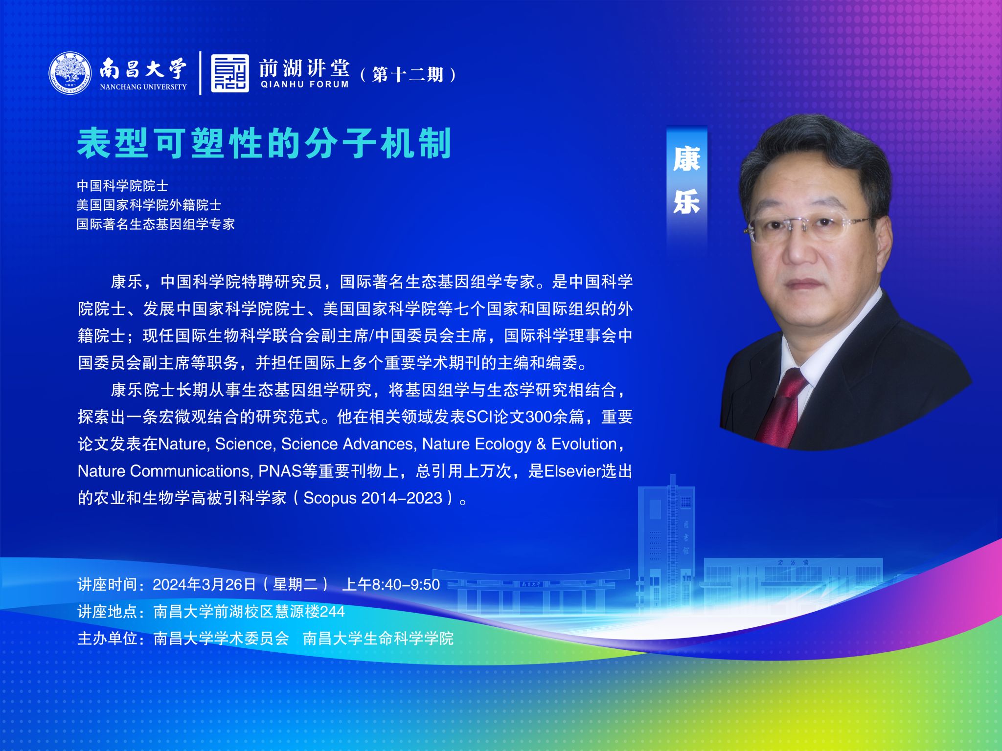 時間 2024年3月26日(星期二) 地點 南昌大學前湖校區慧源樓244