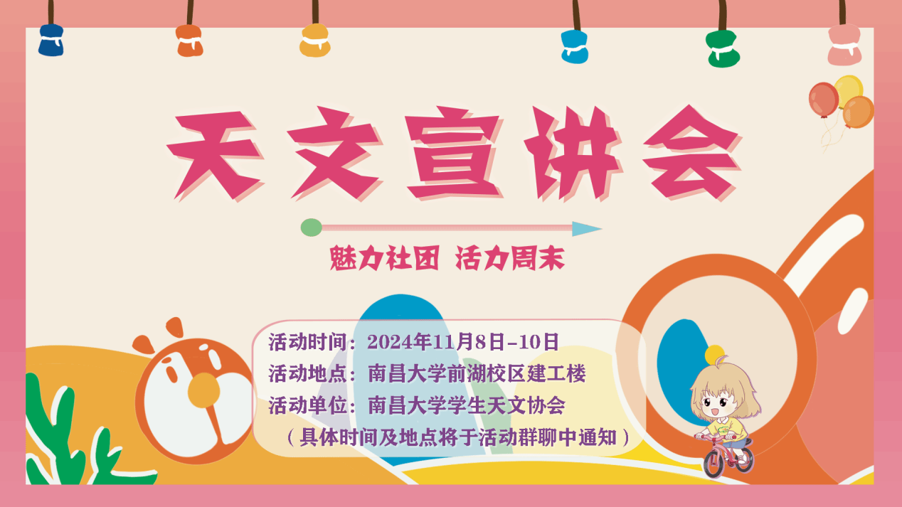 2.增加社團(tuán)成員之間的交流機(jī)會,活躍社團(tuán)內(nèi)部氛圍, 為南昌大學(xué)各個年級的天文愛好者提供一個發(fā)展自己愛好的平臺;